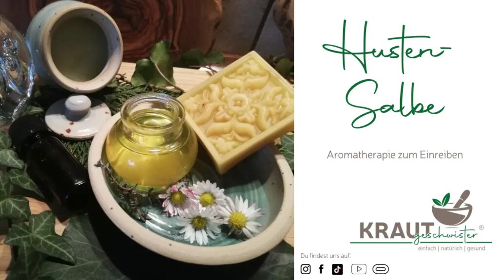 Zubereitung: Kokosöl im Wasserbad schmelzen, Jojobaöl und ätherische Öle zugeben, gut verrühren und in einen sauberen Tiegel füllen. Bei starkem Hustenreiz auf der Brust sanft einmassieren.