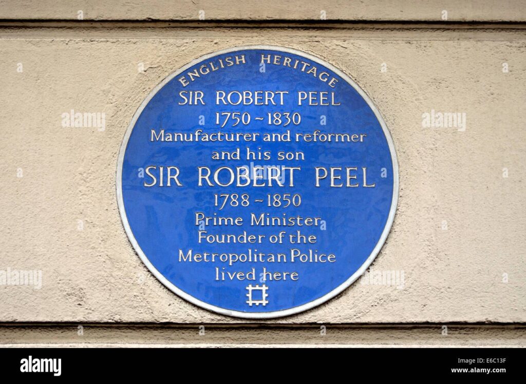 Sir Robert Peel (1788–1850) war ein britischer Staatsmann, der zweimal als Premierminister diente. Er ist vor allem bekannt für seine bahnbrechenden Reformen im Strafrecht und die Gründung der modernen Londoner Polizei, der Metropolitan Police, deren Beamte bis heute als 'Bobbies' bekannt sind.