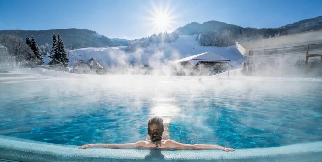 Die Attraktivität der Therme St. Kathrein reicht weit über das Badevergnügen hinaus. Ihre Lage in Bad Kleinkirchheim, einem der schönsten Ferienorte in Kärnten, macht sie zu einem idealen Ausgangspunkt für eine Vielzahl von Aktivitäten, die den Thermenbesuch perfekt ergänzen. Im Sommer lockt die Region mit unzähligen Wander- und Radwegen, malerischen Seen und der Möglichkeit, die alpine Natur in vollen Zügen zu genießen. Nach einem aktiven Tag in den Bergen ist das Eintauchen in das warme Thermalwasser die perfekte Belohnung für müde Muskeln und Gelenke. Im Winter verwandelt sich Bad Kleinkirchheim in ein Skiparadies. Die Nähe zu den Skipisten ermöglicht es, vormittags die perfekt präparierten Abfahrten zu genießen und nachmittags in der Therme neue Kraft zu schöpfen. Die Kombination aus Wintersport und Thermalbadevergnügen ist einzigartig und zieht jedes Jahr zahlreiche Besucher an. Die Therme St. Kathrein ist somit ein Ganzjahresziel, das sich an die Bedürfnisse seiner Gäste anpasst und stets neue Möglichkeiten zur Freizeitgestaltung und Erholung bietet. Die Möglichkeit, das ganze Jahr über das Thermalwasser zu genießen, macht sie zu einem flexiblen Reiseziel, das sich immer an die individuellen Wünsche und das Wetter anpasst.