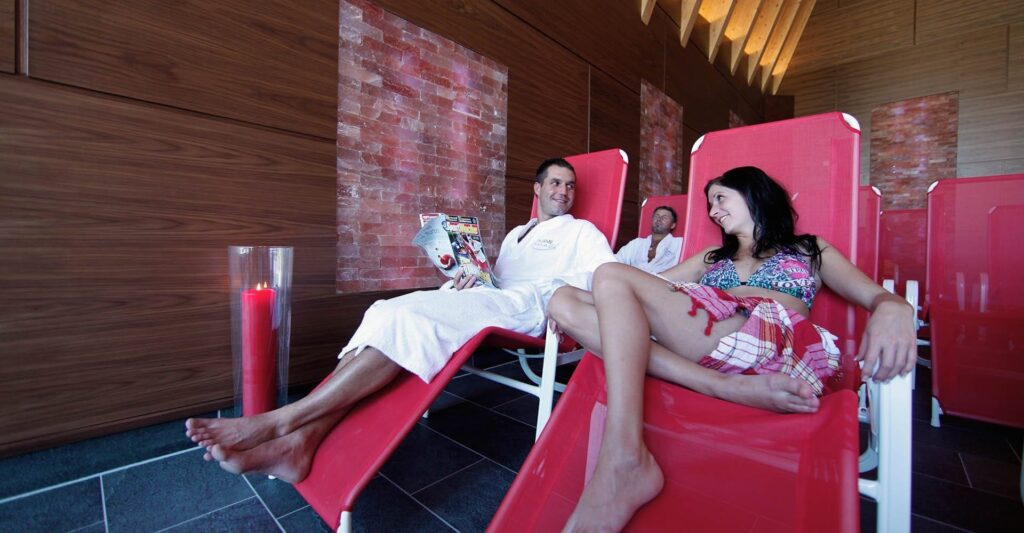 - Dampfbad: Die hohe Luftfeuchtigkeit und moderate Temperatur wirken wohltuend auf Atemwege und Haut.