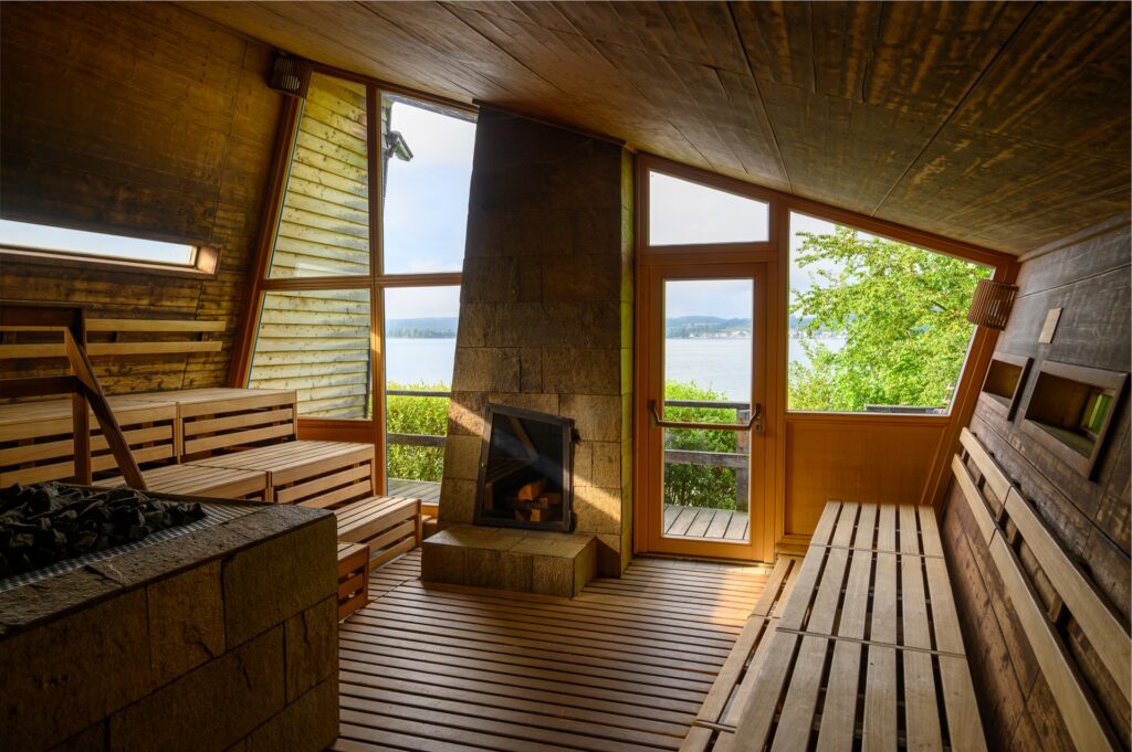 Im Inneren erwartet Sie eine Vielfalt an Saunen, die für jeden Geschmack das Richtige bereithalten. Von der klassischen finnischen Sauna über das sanfte Biosaunium bis hin zur aromatischen Kräutersauna – jede Kabine bietet ein einzigartiges Erlebnis. Die erfahrenen Saunameister begeistern regelmäßig mit wechselnden Aufgussprogrammen, die mit ätherischen Ölen und speziellen Ritualen die Sinne verwöhnen und das Schwitzen zu einem wahren Genuss machen. Zwischen den Saunagängen können Sie sich vor einem knisternden Kaminfeuer entspannen, ein gutes Buch lesen oder einfach nur den Panoramablick über den See und die majestätischen Alpen schweifen lassen.