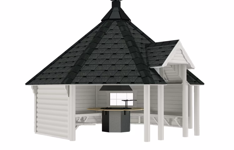 Eine moderne Grillkota ist typischerweise ein achteckiges oder sechseckiges Holzgebäude mit einer zentralen Feuerstelle oder einem Grill. Rund um diese Feuerstelle sind feste Sitzbänke angebracht, die zum Verweilen und Plaudern einladen. Das geschlossene Design mit einem Schornstein sorgt dafür, dass Rauch effizient abgeleitet wird, während die Wärme im Inneren gespeichert bleibt. Grillhütten sind eine breitere Kategorie, die auch rechteckige oder quadratische Formen umfassen kann, oft mit größeren Fenstern oder einer offeneren Bauweise, die sich perfekt für die wärmeren Monate eignet.