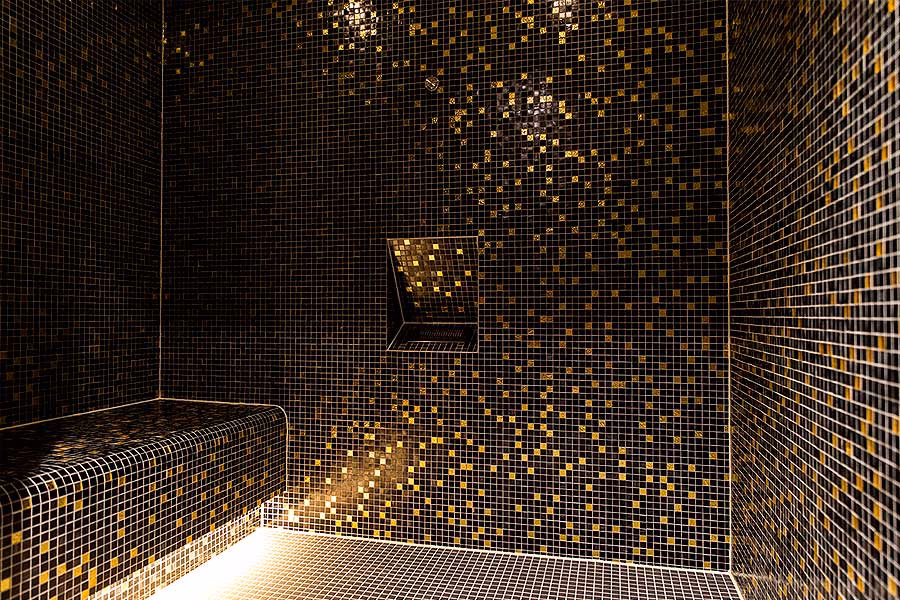 - Dampfbad: Bei 45-50°C und fast 100% Luftfeuchtigkeit reinigt der Dampf die Atemwege und pflegt die Haut. Oft mit Aromen angereichert.