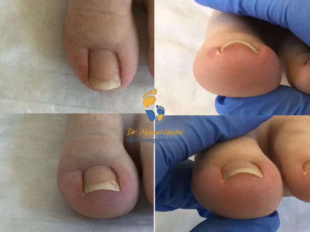 In seltenen, aber schwerwiegenden Fällen, wenn konservative Behandlungen wiederholt fehlschlagen, der Nagel immer wieder einwächst, chronisch entzündet oder vereitert ist und die Lebensqualität erheblich beeinträchtigt, kann eine Operation die letzte Lösung sein. Ziel der Operation ist es, das Nagelbett dauerhaft zu korrigieren, um ein erneutes Einwachsen zu verhindern.