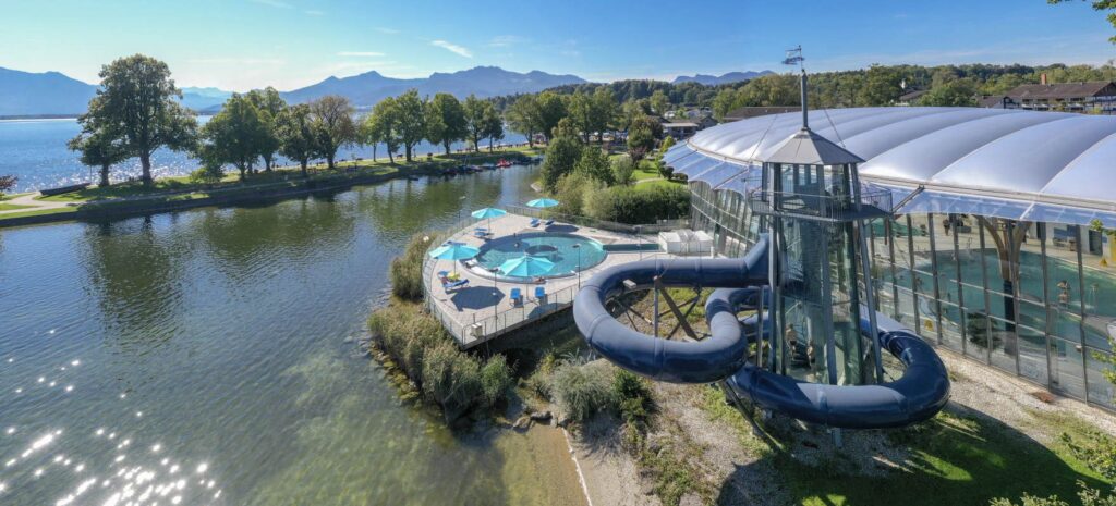 Entfliehen Sie dem Alltag und finden Sie Ihre persönliche Ruheoase inmitten der malerischen bayerischen Alpenlandschaft. Das Prienavera Erlebnisbad am Ufer des Chiemsees ist weit mehr als nur ein Schwimmbad – es ist ein Zufluchtsort für alle, die nach tiefster Entspannung, ganzheitlicher Regeneration und unvergesslichen Wellnessmomenten suchen. Mit einem atemberaubenden Blick auf den glitzernden See, die majestätischen Chiemgauer Berge und das historische Schloss Herrenchiemsee, bietet das Prienavera eine einzigartige Kulisse für Ihre Auszeit vom Stress.
