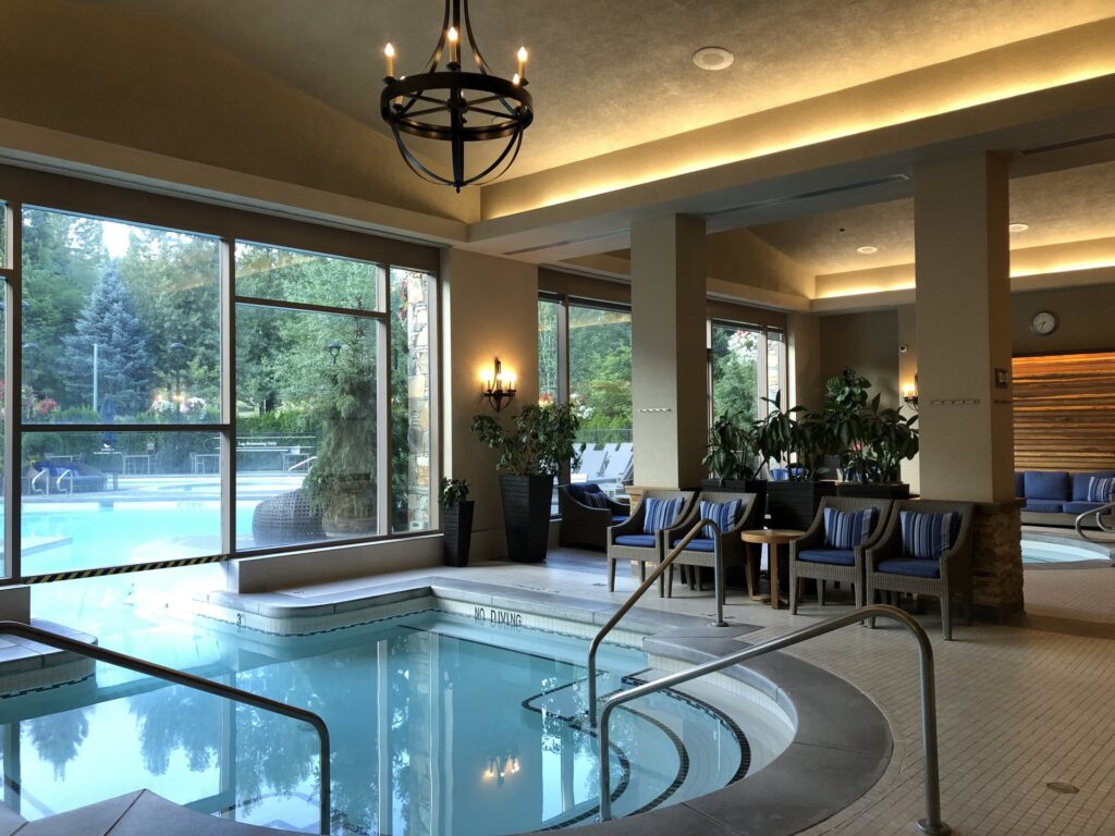 | Umgebung | Beruhigend, erhaben, spiegelt die natürliche Schönheit von Blackcomb wider, mit organischen Elementen. | Angenehm, aber oft generisch, ohne direkte Verbindung zur lokalen Natur oder spezifische Designphilosophie. |