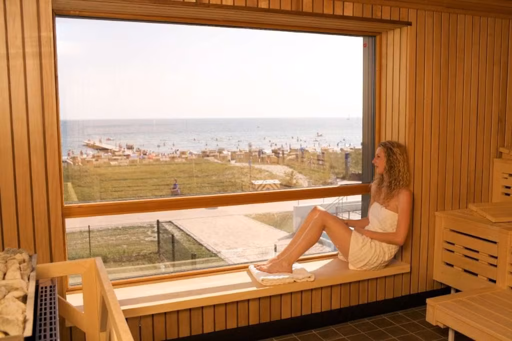 - Panoramasauna: Während Sie schwitzen, genießen Sie einen atemberaubenden Blick auf den Strand und das weite Meer – ein visuelles Erlebnis, das die Entspannung verstärkt.