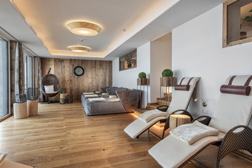 - Die Zirben-Panoramasauna: Die Zirbe, auch Königin der Alpen genannt, ist bekannt für ihre beruhigende Wirkung auf den Kreislauf und den Schlaf. In dieser Sauna können Sie nicht nur die wohltuende Wärme genießen, sondern auch den feinen, harzigen Duft des Holzes einatmen, während Ihr Blick über die majestätische Bergwelt schweift. Ein wahrhaft ganzheitliches Erholungserlebnis.