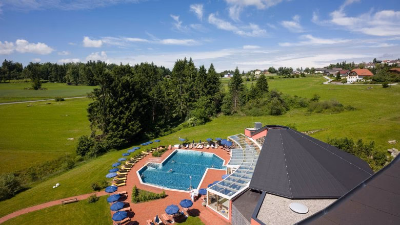 - Beheizte Innen- und Außenpools, oft mit Hydromassage-Funktionen