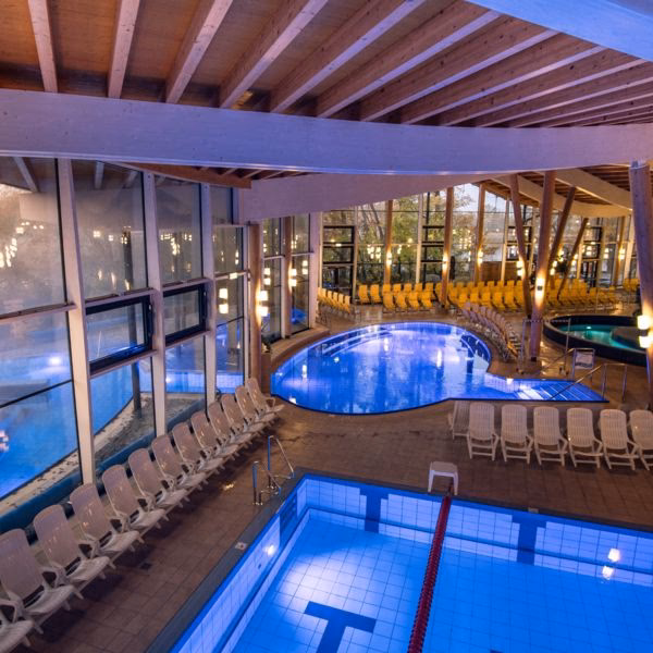 | Sole-Relax-Lagune (innen & außen) | Sole (1,5% - 5%) | Variabel (angenehm warm) | Tiefenentspannung, Schweben, heilende Wirkung, ganzjährig |