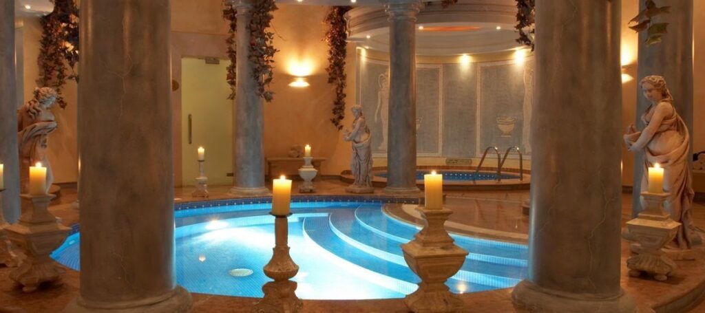 - Komfortable und luxuriöse Behandlungsbereiche im Innen- und Außenbereich, einschließlich Pools und Saunen.