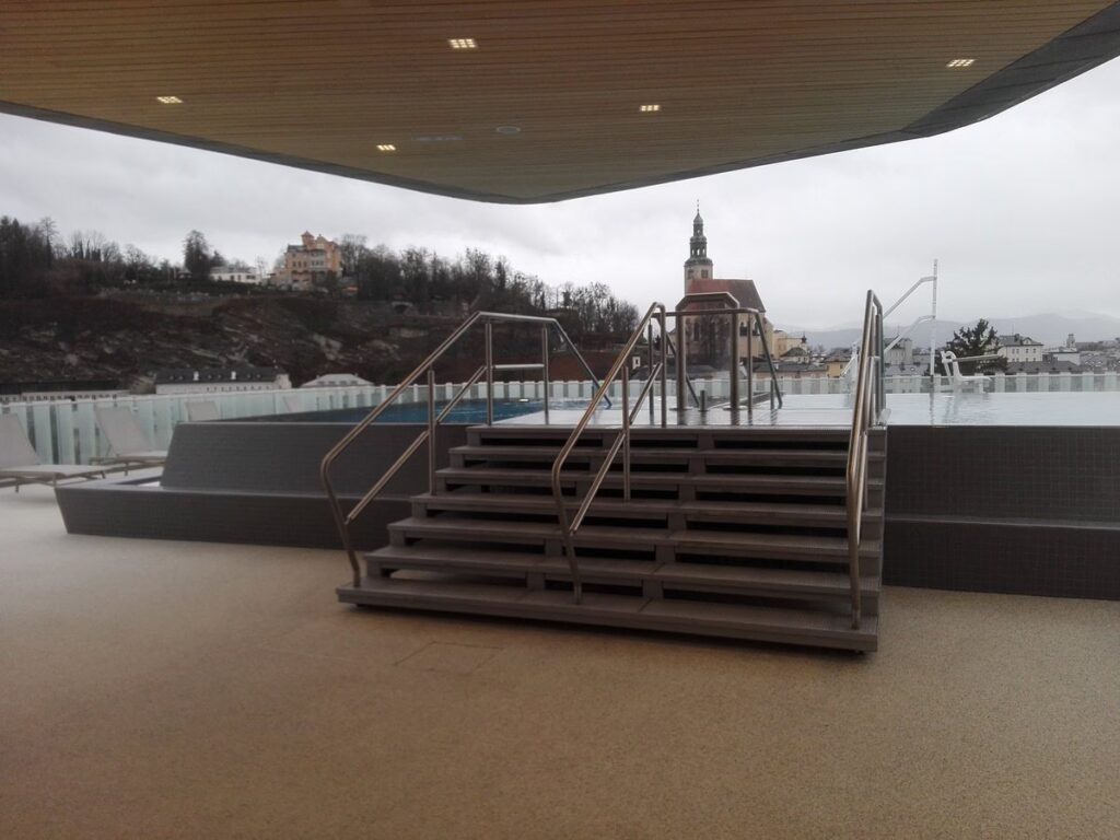 Nach einer intensiven Therapieeinheit kann beispielsweise die Möglichkeit, das umfassende Angebot des Hallenbades zu nutzen, zur Entspannung und Regeneration beitragen. Das Schwimmbad mit Sport-, Familien- und Kinderbecken, sowie Attraktionen wie Kletterwand und Rutsche, bietet eine willkommene Abwechslung und fördert die Bewegung auf eine andere Art und Weise. Der weitläufige Saunabereich mit Bio- und Kräutersauna, Dampfbad und Infrarotkabine ist eine hervorragende Ergänzung zu den therapeutischen Anwendungen, da Wärme und Entspannung die Muskulatur lockern und den Stresspegel senken können. Die ganzjährig geöffnete Außenterrasse des Saunabereichs bietet zudem einen spektakulären Blick auf die Salzburger Altstadt, der die Seele beruhigt und den Geist erfrischt.
