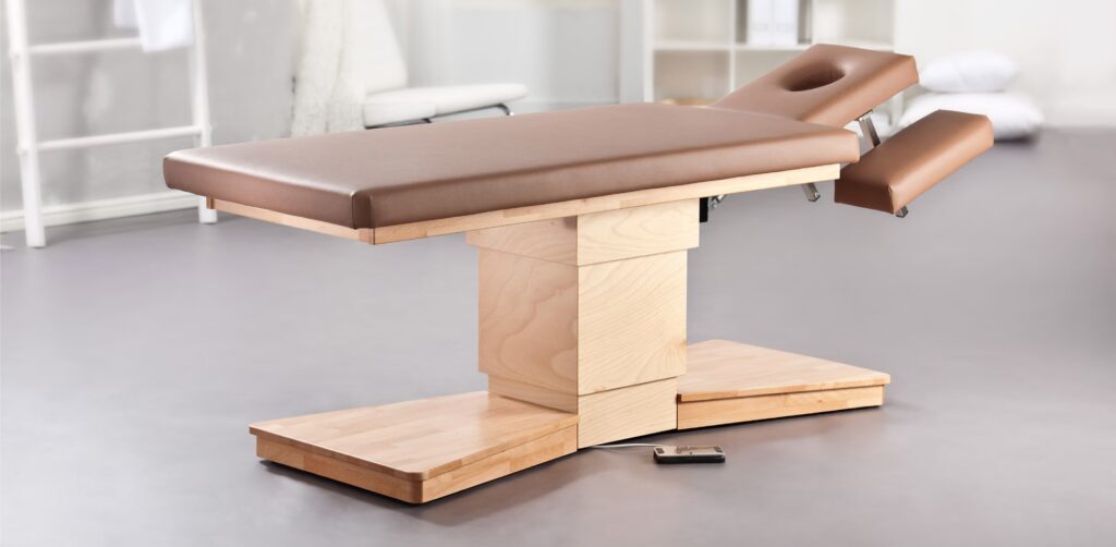 Wie bereits ausführlich beschrieben, bieten diese Liegen den höchsten Komfort und die beste Ergonomie durch ihre motorisierte Höhen- und oft auch Sektionsverstellung. Sie sind ideal für etablierte Praxen, die Wert auf Professionalität, Effizienz und Therapeuten-Gesundheit legen.