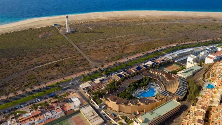 Das Hotel befindet sich in einer erstklassigen Lage auf Fuerteventura, direkt am berühmten Leuchtturm von Morro Jable und unmittelbar am wunderschönen Matorral Strand. Diese Position bietet nicht nur einen einfachen Zugang zum Meer, sondern auch eine malerische Umgebung mit Blick auf den Leuchtturm.