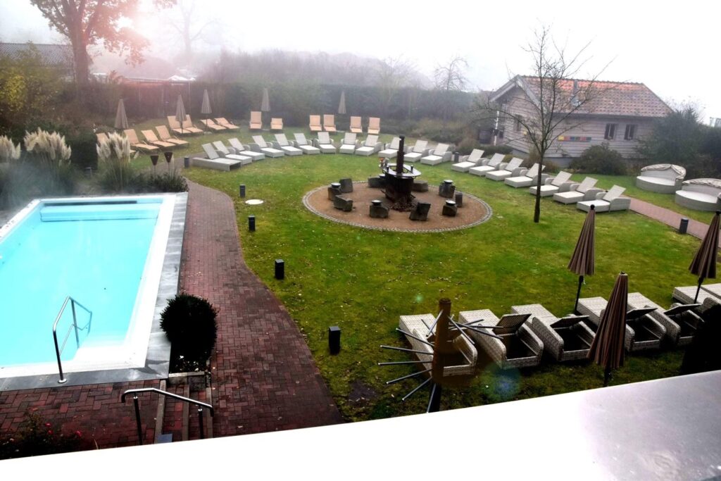 Nach einem intensiven Saunagang ist die richtige Abkühlung und Ruhe entscheidend für den vollen Nutzen. Im Saunagarten finden Sie bequeme Liegen, die zum Verweilen unter freiem Himmel einladen. Eine gemütliche Feuerstelle schafft zudem eine besonders idyllische Atmosphäre, ideal für besinnliche Momente. Im Innenbereich stehen Ihnen mehrere Ruheräume zur Verfügung, die mit ihrer ruhigen Gestaltung und angenehmen Beleuchtung perfekte Rückzugsorte bieten. Ein Kaminzimmer lädt zum Verweilen bei knisterndem Feuer ein, während ein spezieller Schlafraum absolute Stille für jene bietet, die eine tiefe Ruhepause suchen. Diese sorgfältig gestalteten Bereiche stellen sicher, dass Ihr Körper und Geist nach der Wärme die notwendige Erholung finden, um die volle Wirkung der Wellness-Anwendung zu entfalten.