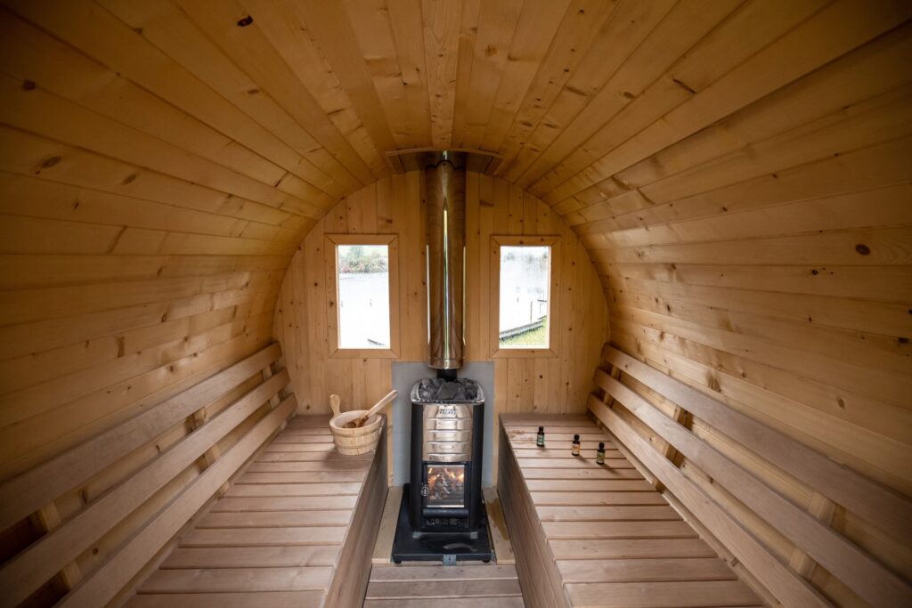 - Meditations-Sauna (80°C): Eine Oase der Ruhe, in der man bei angenehmer Wärme und sanfter Atmosphäre entspannen kann.