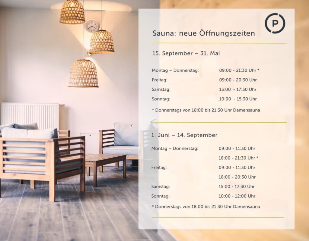 Sauna-Sommer-Öffnungszeiten (ab 28.04.2025 bis 28.09.2025)