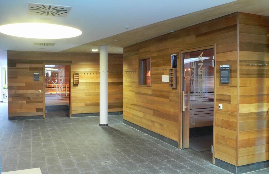 - Entspannende Momente in der modernen Saunalandschaft: Einfach mal abschalten und die Seele baumeln lassen.