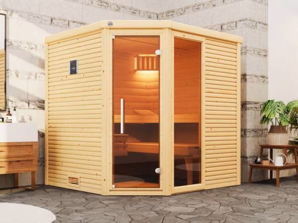 Es gibt jedoch auch Mini-Saunas, die als 2-Personen-Saunas vermarktet werden. Diese sind etwas größer, aber immer noch kompakt genug, um in kleinere Räume zu passen. Bei 2-Personen-Modellen ist es wichtig zu beachten, dass der Platz zwar für zwei Personen ausreicht, aber die Beinfreiheit und Bewegungsfreiheit eingeschränkter sein können als in einer großen Familiensauna. Man sitzt in der Regel nebeneinander und eher aufrecht, anstatt sich hinlegen zu können. Für Paare, die gemeinsam entspannen möchten, ohne viel Platz opfern zu müssen, sind diese Modelle eine ausgezeichnete Wahl. Sie fördern die gemeinsame Entspannung und können eine wunderbare Ergänzung für die gemeinsame Freizeitgestaltung sein.