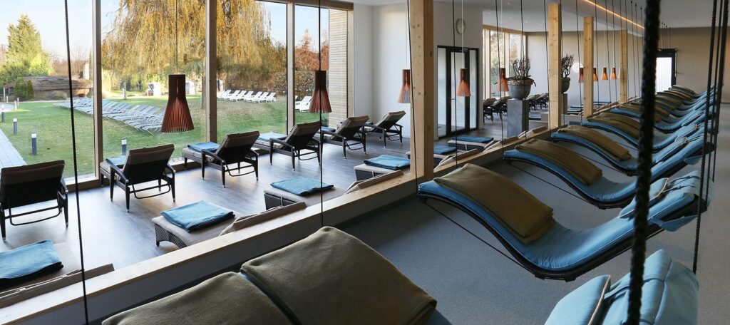 Das absolute Herzstück des See Park Janssen ist zweifellos der exklusive SPA-Bereich, eine wahre Wohlfühloase, die sich über beeindruckende 8.000 Quadratmeter erstreckt. Dieser Bereich wurde mit größter Sorgfalt und viel Liebe zum Detail gestaltet, um den Gästen ein Höchstmaß an Entspannung und Regeneration zu bieten. Schon beim Betreten des SPA-Bereichs spürt man die besondere Atmosphäre, die zum Abschalten und Loslassen einlädt. Auch hier ist der Blick in die grüne Landschaft stets präsent und verstärkt das Gefühl der Verbundenheit mit der Natur.