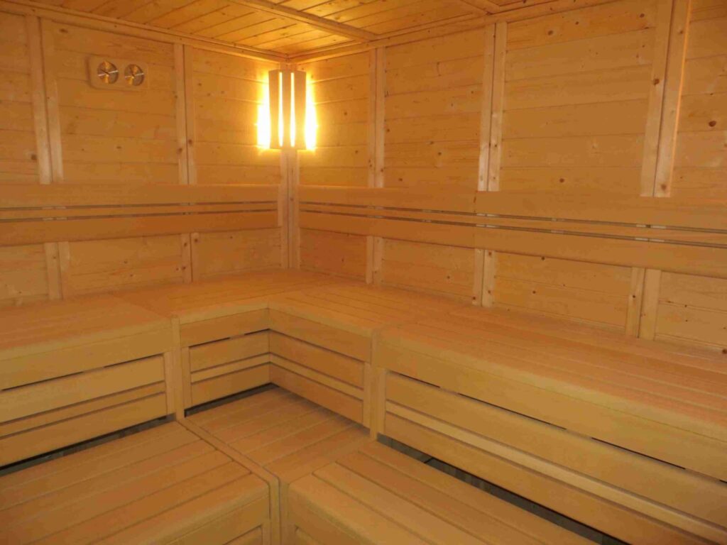 Für die Liebhaber intensiver Hitze steht die Finnische Heißluftsauna zur Verfügung, die mit Temperaturen von 85°C bis 90°C ein klassisches und belebendes Saunaerlebnis bietet. Die trockene Hitze fördert eine intensive Durchblutung und regt den Stoffwechsel an, was zu einer tiefen Entgiftung des Körpers führt. Hier können Sie spüren, wie sich jede Faser Ihres Körpers entspannt und der Geist zur Ruhe kommt. Ein Saunagang in der finnischen Sauna ist ein wahrer Energieschub und hinterlässt ein Gefühl von Reinheit und Frische.