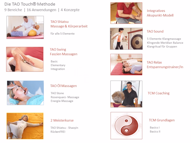 Die Tao Methode ist ein rechtlich abgesicherter Status, der Ihnen als Anwender eine besondere Stellung im Markt sichert. Sie ermöglicht eine hochwirksame Arbeit in den Bereichen Therapie, Rehabilitation, Prävention und Rekonvaleszenz, indem sie einen ganzheitlichen Ansatz verfolgt, der Körper, Geist und Seele miteinander verbindet. Dies unterscheidet sie von vielen anderen Ansätzen, die sich oft auf einzelne Aspekte beschränken.