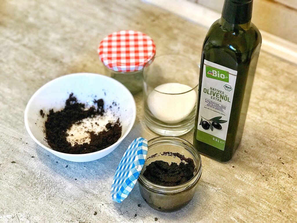 • Kaffeesatz: Eine nachhaltige Wahl, da Sie Kaffeesatz einfach wiederverwenden können. Kaffeesatz ist ein hervorragendes Peeling-Mittel, das die Durchblutung fördert und oft bei Cellulite-Behandlungen eingesetzt wird. Das enthaltene Koffein kann belebend wirken.