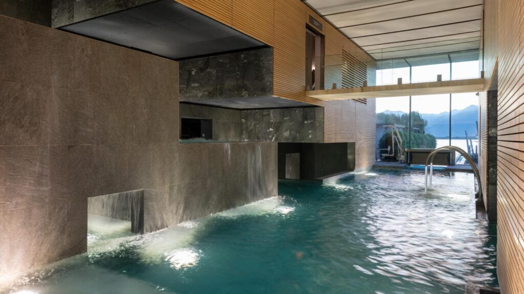 Die Termali Salini & Spa ist weit mehr als nur ein Schwimmbad; sie ist ein architektonisches Meisterwerk, das sich harmonisch in die Landschaft einfügt und das Gefühl vermittelt, direkt im See zu baden. Das Konzept basiert auf der Idee, die natürliche Umgebung in das Badeerlebnis zu integrieren. Hier finden Sie nicht nur Becken mit verschiedenen Salzkonzentrationen, die an die berühmten Solebäder erinnern, sondern auch eine vielfältige Saunalandschaft, Dampfbäder und luxuriöse Behandlungsräume, die eine breite Palette an Massagen und Schönheitsanwendungen anbieten. Jeder Bereich ist darauf ausgelegt, eine Atmosphäre der Ruhe und des Friedens zu schaffen, in der der Alltagsstress vollständig von Ihnen abfällt.