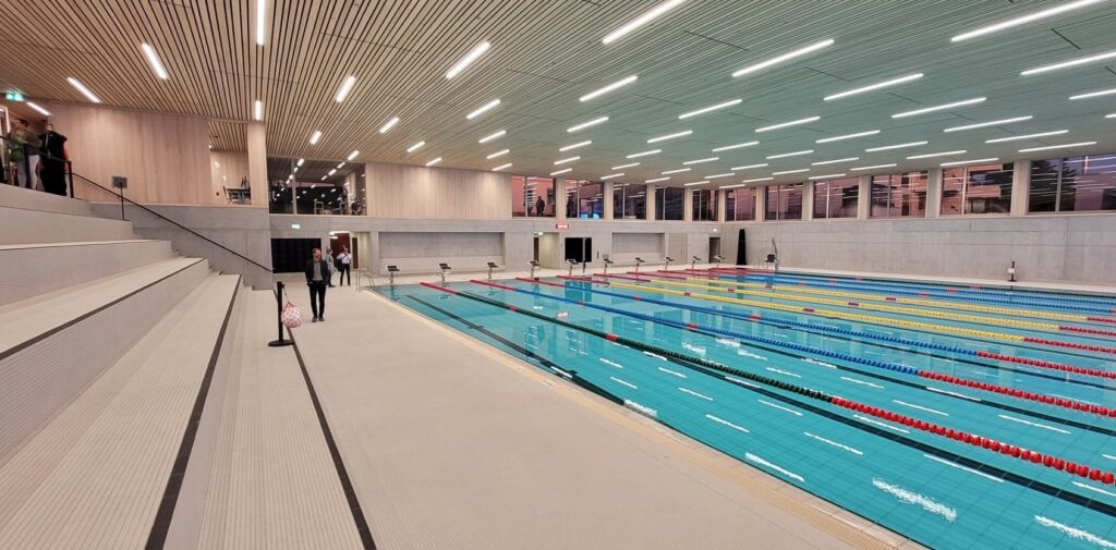 Auch während der Umbauphase bietet das Bad Egelsee bereits hochwertige Möglichkeiten für Sport und Entspannung. Für den regulären Schwimmbetrieb steht Ihnen exklusiv das brandneue 25-Meter-Sportbecken zur Verfügung. Dieses Becken ist ideal für ambitionierte Schwimmer, die ihre Bahnen ziehen und an ihrer Kondition arbeiten möchten. Die modernen Anlagen gewährleisten ein angenehmes und effizientes Trainingserlebnis, auch wenn der volle Umfang des Bades noch nicht gegeben ist. Die Wasserqualität und die klaren Bahnen laden zu ausgedehnten Schwimmeinheiten ein.